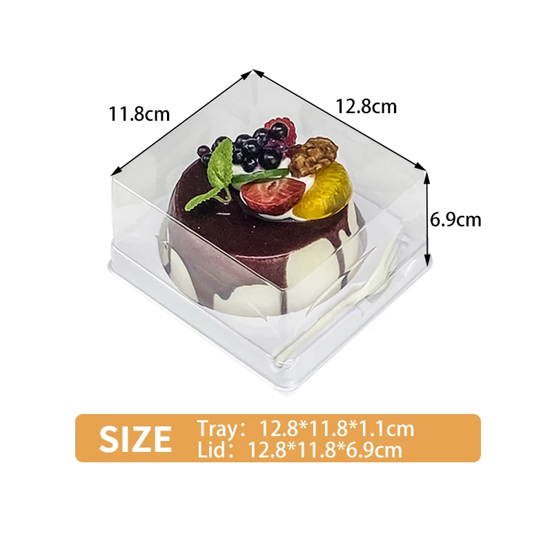 Custom Disposable 4 Inch Cake Packaging Box Pet Blister Plastic Mini Packing Boxes With Watching Fork For Mousse Cake Dessert